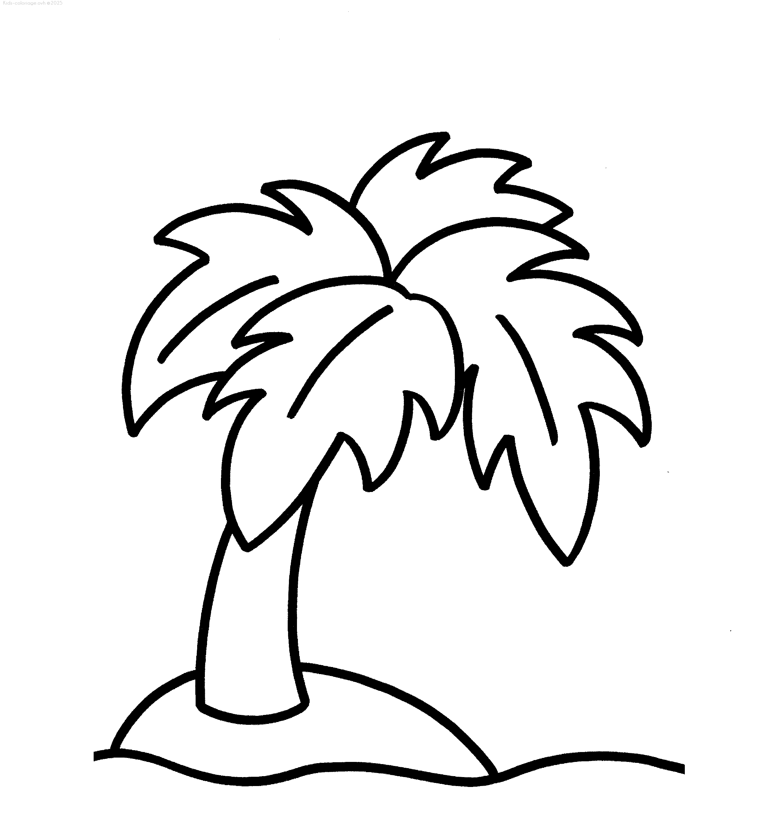 Le sol est jaune et vert pour la végétation. Voici un coloriage d'un palmier à imprimer gratuitement. Imprime-le et personnalise cette scène selon tes envies.